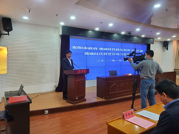 2021年1月13日上午,盛威時(shí)代智慧谷項(xiàng)目簽約儀式在市黨政綜合樓2樓第5會(huì)議室舉行,市政府、盛威集團(tuán)、安陽戰(zhàn)新基金、示范區(qū)管委會(huì)、經(jīng)開集團(tuán)等單位的主要領(lǐng)導(dǎo)參加簽約儀式。儀式由市政府秘書長(zhǎng)李傳銀主持,常務(wù)副市長(zhǎng)陳志偉代表市政府簽約,袁家健市長(zhǎng)致辭,齊方董事長(zhǎng)代表經(jīng)開集團(tuán)出席簽約儀式。