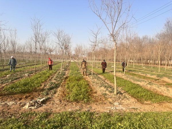 北關(guān)區(qū)柏莊鎮(zhèn)藥用牡丹育苗項目進行除草工作