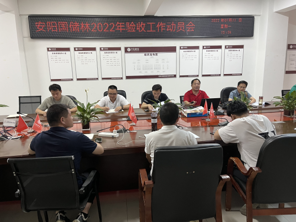 2022年7月11日下午,景欣公司在國儲林項目部二樓會議室召開項目2022年度驗收工作動員會,安排項目階段性驗收工作相關事宜,景欣公司、中信建設安陽國儲林項目部、項目第三方驗收單位負責人員及施工一部、二部代表參加會議。